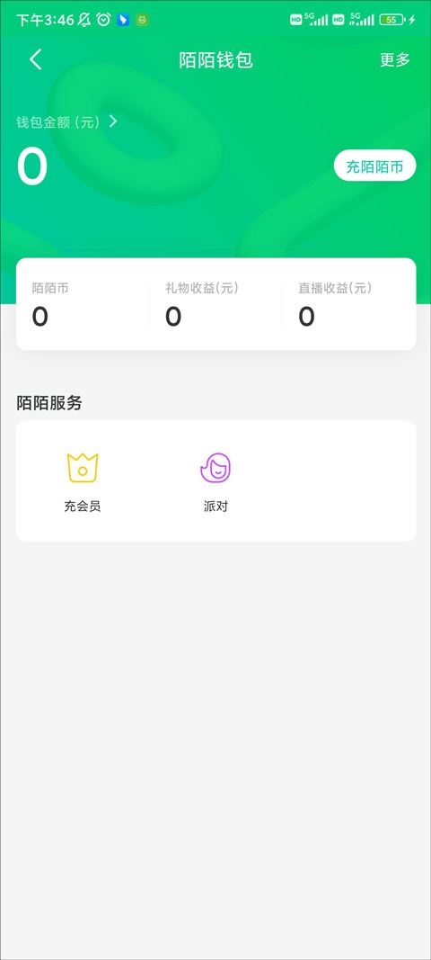 3、在钱包界面的右上角找到“充陌陌币”按钮,点击进入。