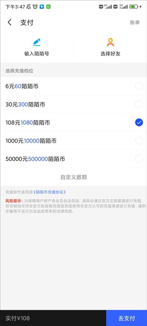 5、点击“赠送他人”后,您需要选择赠送对象,可以直接输入陌陌号或选择好友。