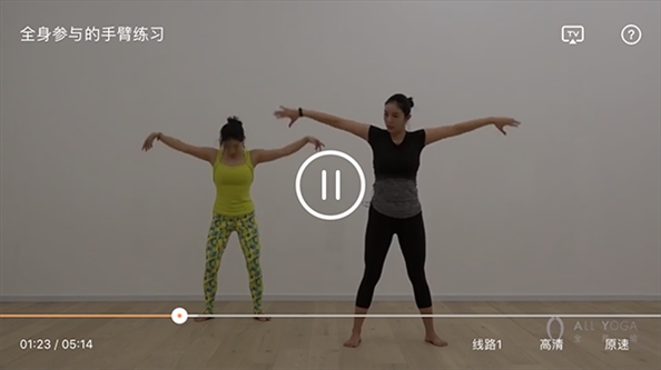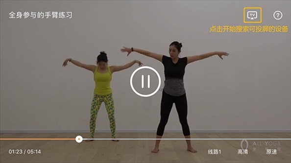 二,确保手机连接到与电视相同的Wi-Fi网络,打开全是瑜APP,选择想要练习的课程并进入播放界面。
