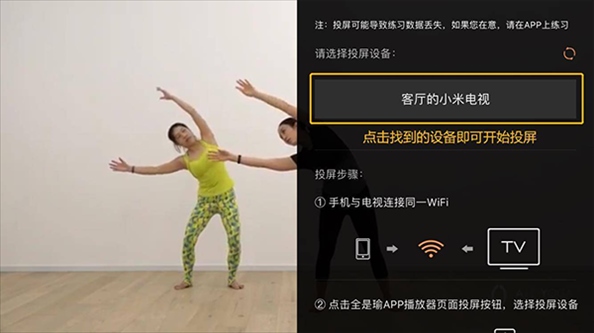 ① 若不希望丢失练习记录,请在投屏过程中保持APP开启,并避免退出投屏页面。这样,APP才能准确记录练习情况。