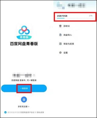 如果你的手机上已经安装了百度网盘,首次启动时会自动识别并快速登录原有账号。如果没有安装原版,也可以通过手机号注册登录。进入后,你会看到可用空间为10GB。