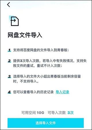 该版本支持将普通版的文件导入青春版,但每个账号仅有3次导入机会。如果导入失败,可以重试,重试不计入次数;如果导入的文件超过青春版剩余空间,则无法导入。建议大家珍惜这3次导入机会。如果用完后,可以考虑重新注册一个新账号。